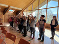 Wie viel Freude und Energie beim gemeinsamen Singen entsteht, konnten wir bei der der Abschlusspräsentation am Freitag Nachmittag in einer vollbesetzten Aula erleben.