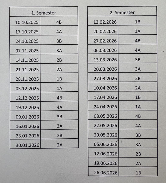 Die Terminliste wurde laut der Beschlüsse in den Klassenforen erstellt.